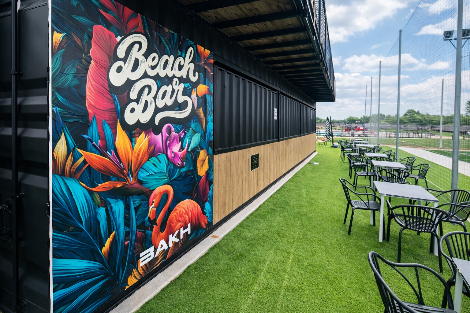Bar con terraza urbana, hecho a partir de un contenedor, en la Ciudad Deportiva del Baskonia-Alavés. Un espacio moderno y relajado para disfrutar antes o después del entrenamiento.