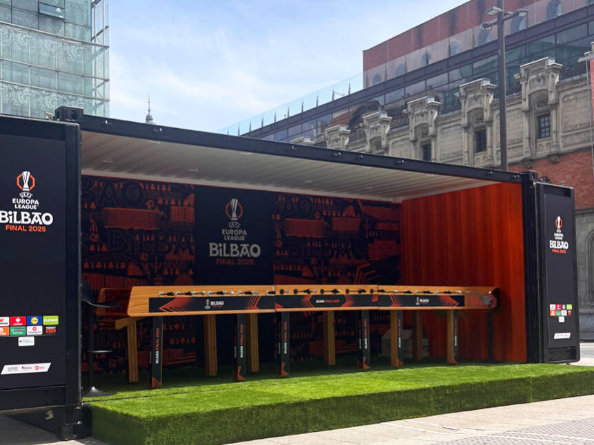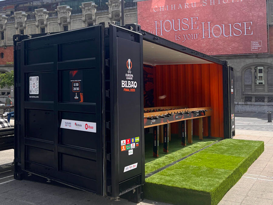 Con motivo de la final de la Europa League en Bilbao, nos alquilaron uno de nuestros contenedores para colocar dentro un futbolín gigante. ¡Una manera única y divertida de vivir la emoción del fútbol a lo grande!